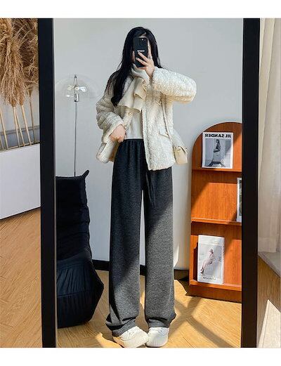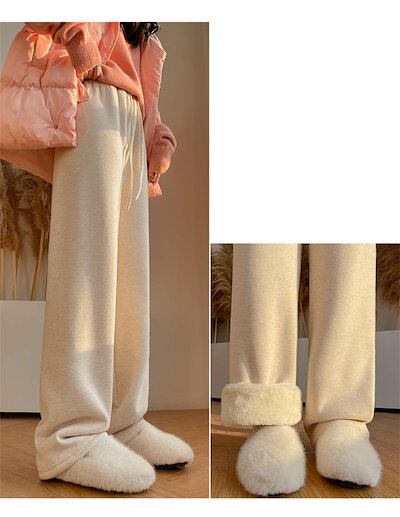 ロング レディース 体型隠し おしゃれ 着回し フェミニン きれいめ シンプル ストレートパンツ 暖か リラックス 裏起毛 秋冬 ワイドパンツ 防寒 着?せ ボトムス ウエストゴム パンツ ズボン カ