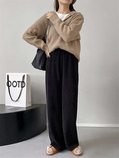 高見え カジュアル ブラック オフィス 体型カバー おしゃれ 秋冬 ワイドパンツ きれいめ L ボトムス ロング ウエストゴム パンツ ガウチョパンツ 大人 楽ちん ホワイト レディース ズボン ゆ