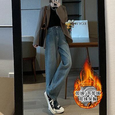 デニムボトムス レディース モップパンツ ジョガーパンツ ストレートパンツ 裏起毛 ワイドパンツ