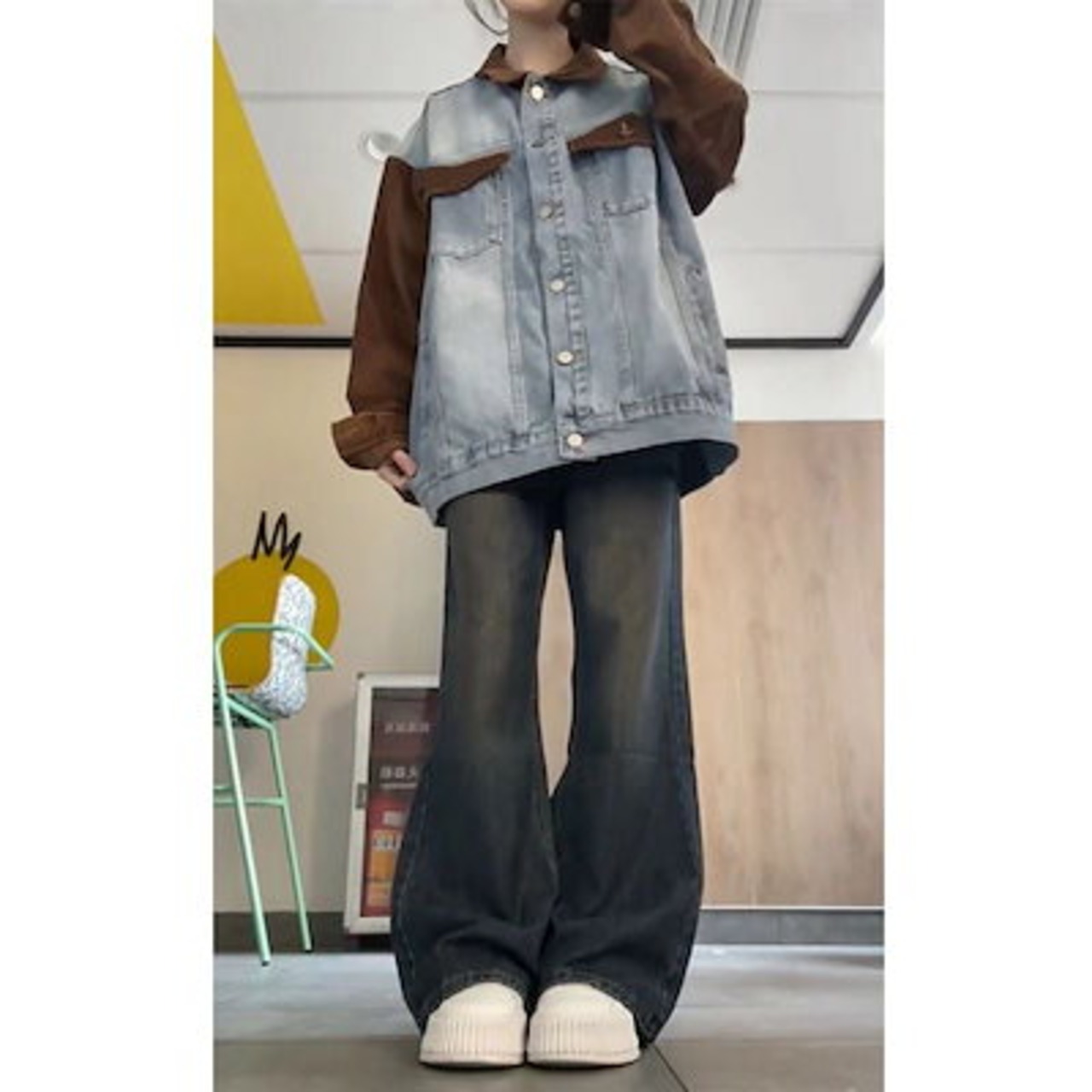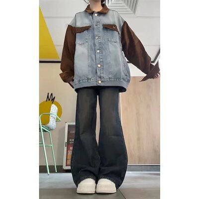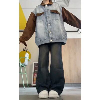 デニムパンツ 人気スラックスパンツアメリカンバイブ レトロ フレア ジーンズ レディース ハイウエスト 細身 ワイドレッグ パンツ イン ファッション