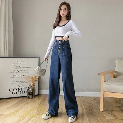 メガ割 3日で出荷デニムパンツ レディース ガウチョパンツ ジーパン ワイドパンツ ハイウエス ト ロングパンツ カジ2316