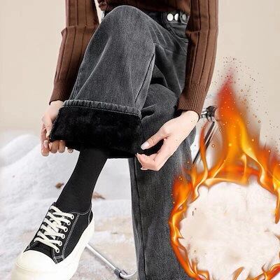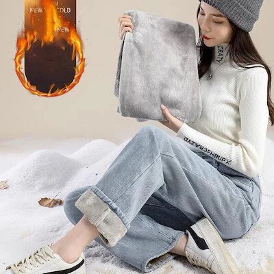 裏起毛 厚手 ハイウエスト レディース デニム ワイドパンツ 学生 百掛け 保温 ストレートパンツ