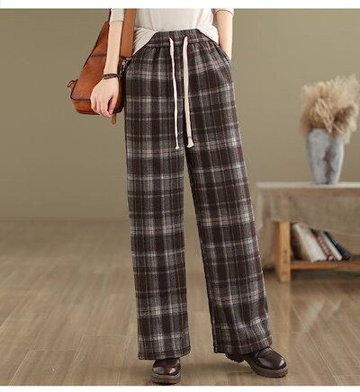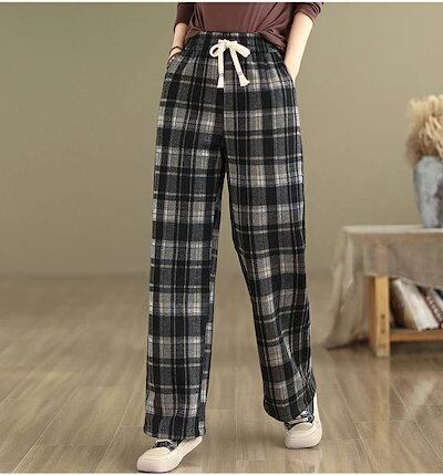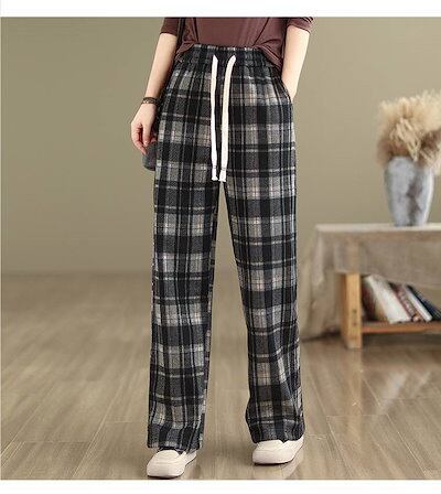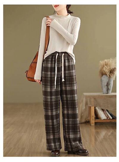 パンツ チェック柄パンツ 裏起毛パンツ レディース ボトムス ワイドパンツ チェック柄 イージーパンツ 長ズボン ルームウェア ロング丈 ウエストゴム 裏起毛 裏ボア 厚手 ポケット付 暖かい 秋冬