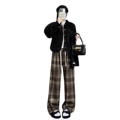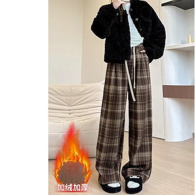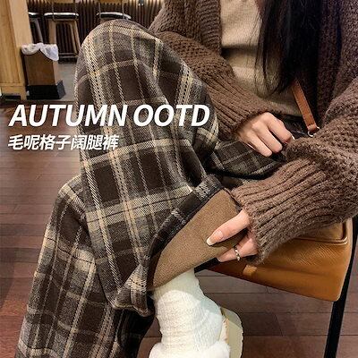 激?れ人気商品ワイドパンツ 韓国ファッションパンツ レディース 秋冬新作 レトロ ストレートパンツ ハイウエスト ツイード パッド付き ワイドパンツ