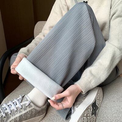 激?れ人気商品ワイドパンツ 韓国ファッション裏起毛パンツ ワイドパンツ レディース 秋冬新作 ゆったり ハイウエスト ストレート カジュアルパンツ ズボン