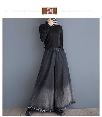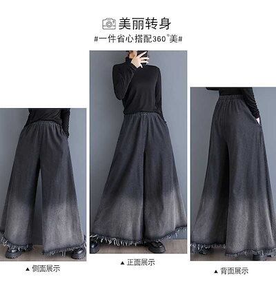 「ファットガール」 2024秋新品 デニム ワイドパンツ 大きいサイズ 体型カバー レディース フレア ゴム グラデーション ジーンズ ロングパンツ メガ割