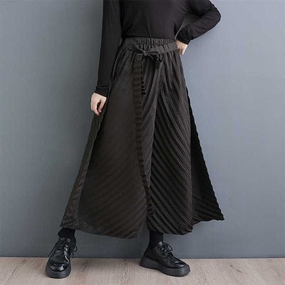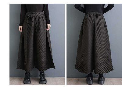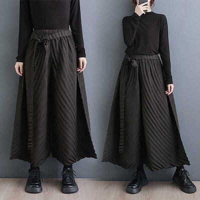 「ファットガール」 2024春新品 キュロットスカート ワイドパンツ 皺デザイン ゴムウエスト 大きいサイズ 体型カバー レディース ロングパンツ
