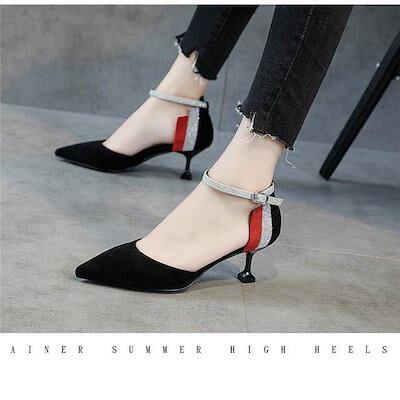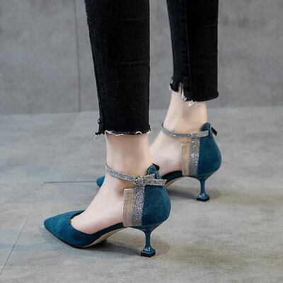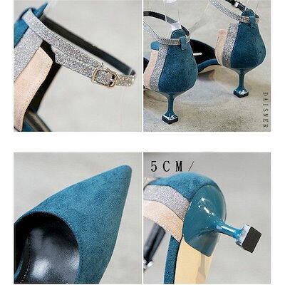 ハイヒール ポインテッドトゥ シューズ ストラップピンヒール 美脚 履きやすい 痛くない 靴 レディース 春夏 キラキラ スエード調パンプス パーティーシューズ