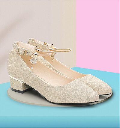 パンプス キラキラ 太いヒール ローヒール チャンキーヒール アーモンドトゥ ストラップ アンクルストラップ 上品 ゴージャス 黒 ゴールド 結婚式 ピアノ 発表会 綺麗め パーティー シューズ 靴