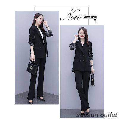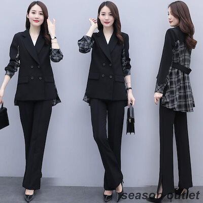 セットアップ レディース 40代 秋冬新作 長袖スーツジャケットチェック柄 ワイドパンツ 2点セット 通勤 フォーマル カジュアル オシャレ 上品 大きいサイズ