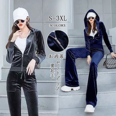 2025新作 カジュアル セットアップ レディース 裏起毛 厚手 パーカー スウェット 運動 ワイドパンツ 二点セット 着痩せ 大きいサイズ 裏起毛ファッション1