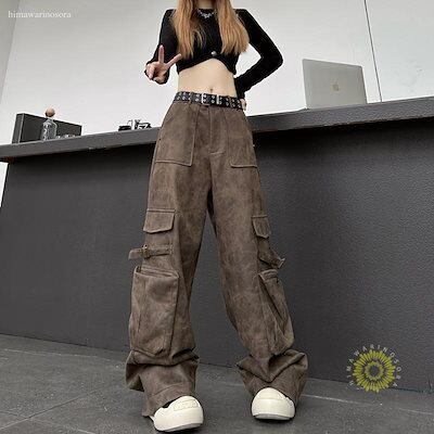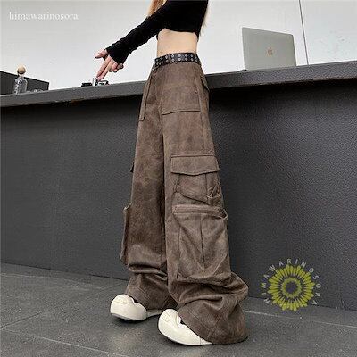 カーゴパンツ レディース 革パン ワイドパンツ ライダースパンツ オシャレ ダンスパンツ ヒップホップ ズボン ゆったり 大きいサイズ 春秋