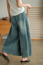 大人 カジュアルに デニムパンツ パンツ デニムワイドパンツ 大きいサイズ レディース パンツ コットン 大人 の 楽ちん 美ゆるゆったり デニム ワイドパンツ オリジナル デニムパンツ ゆったり カ
