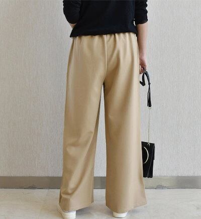落ち感ありワイドパンツ レディース 春 きれいめ ボトムス ロング丈 大きいサイズ 柔らか ウエストゴム ゆったり 通勤 バギーパンツ イージー 美脚 体型カバー 大人 カジュアル オフィス OL