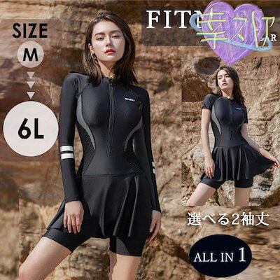 大きいサイズ 水着 フィットネス レディース 半袖 長袖 フィットネス水着 二の腕もカバー 体型カバー 6L 5L 4L 3L