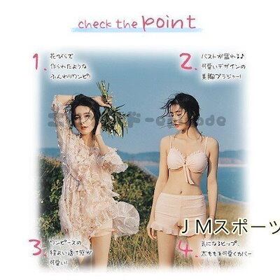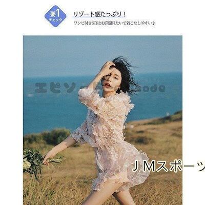 セールセルビキニ水着 体型カバー 3点セット 七分袖ワンピース付き 花柄 シースルー レディース セパレート ショートパンツ
