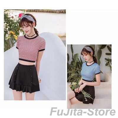 水着 タンキニ スイムウェア 上下2点セット セパレート レディース 女性 おしゃれ かわいい スポーティー 半袖 短パン 体型カバー ミニスカート