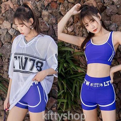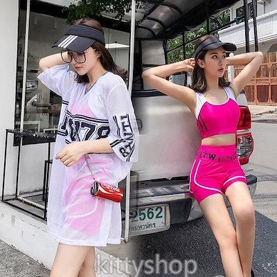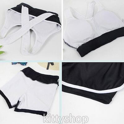 水着 黒 レディース 3点セット 体型カバー タンキニ ブラック 20代 スイムウェア 韓国風 スポーツ 水着セット ブルー グレー グ ピンク