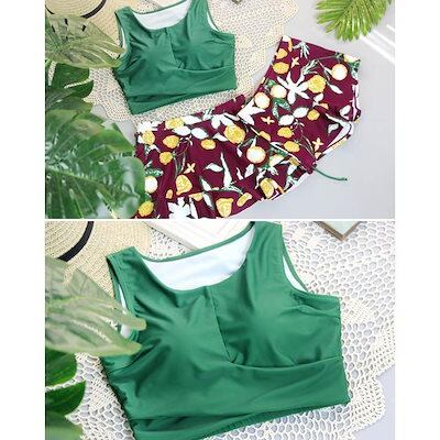 タンキニ レディース 3点セット水着 ショートパンツ フレアスカート 切り替え プリント お洒落 海 海水浴 セット水着 スイムウェア