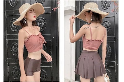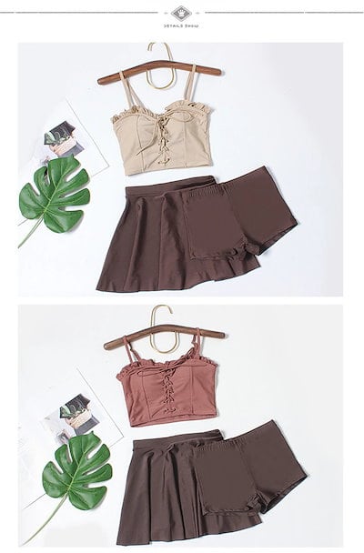 体型カバー レディース タンキニ ショートパンツ 3点セット 露出控えめ 韓国風 小胸 水着ビスチェ3650愛い セクシー セパレート ママ ミセス 学生 水着