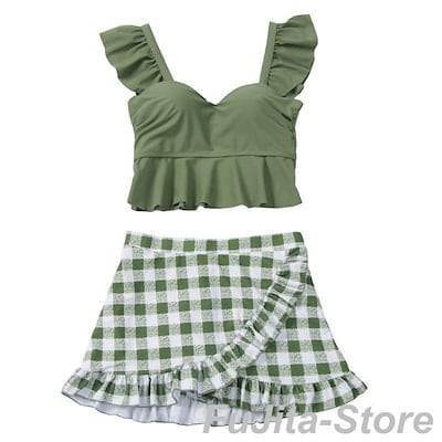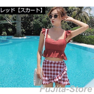 水着 上下セット タンキニ ビキニ セパレート レディース ママ 体型カバー フリル フレア スカート ショーツ ビスチェ パッド付き ワイヤー入り