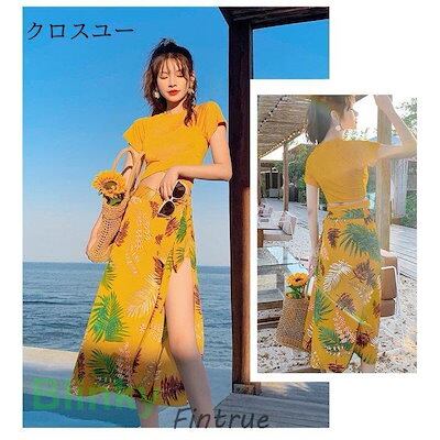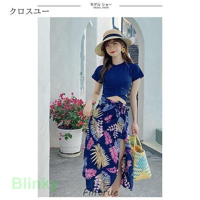 タンキニ レディース 水着 体型カバー 3点セット ビキニ パレオ 水泳服 スイムウェア リゾート ビーチウェア 胸パッド付き ワイヤー無し