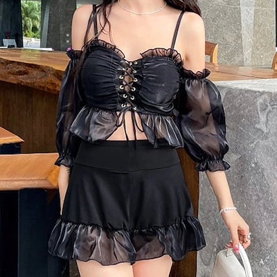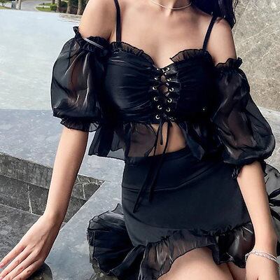 水着 2023年最新モデル おしゃれな水着 水着体型カバー オフショルダー ビキニ 新品レディースファッション メカ割