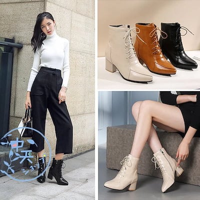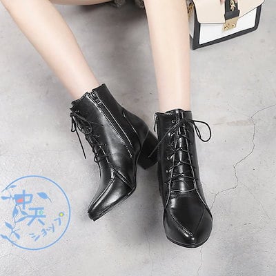 メガ割 ショートブーツ ブーティー レディース袴用ブーツ 太ヒール ショート丈 レースアップ 編み上げブーツ