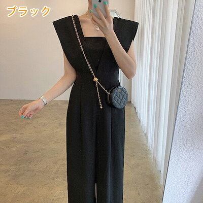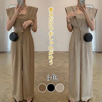 【急速出荷!】オールインワン レディース Vネック サロペット ワイドパンツ きれいめ エレガント 美シルエット 着痩せ 体型カバー シンプル かわいい 美脚 無地 ゆったり おしゃれ カジュアル コ