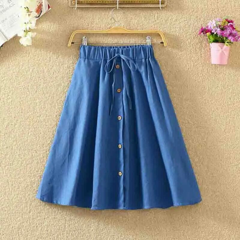 プリーツ A ラインミディスカート弾性ウエストボタンフロントフレアロングスカート女性 レッド エラスティック 伸縮 Aライン sa0713a98081827191