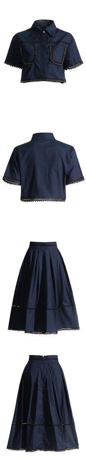 TWOTWINSTYLE スリム 2 点セット女性ラペル半袖トップウエスト A ラインスカートソリッドセット ショート ハーフスリーブ Aライン ソリッドカラー sas0727b67133034366