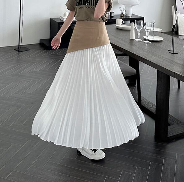 2024春夏新作 スカート ロング丈スカート プリーツワンピース ファッション ボトムス ハイウエスト 気質