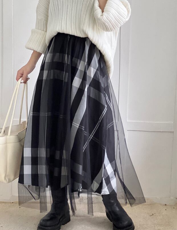 2024秋新作 スカート レディース ロングスカート ロング ボトムス 気質 チェック柄 aライン