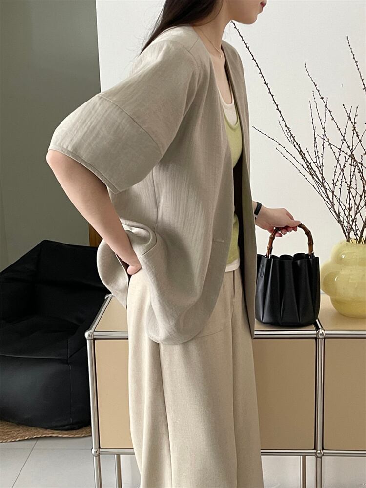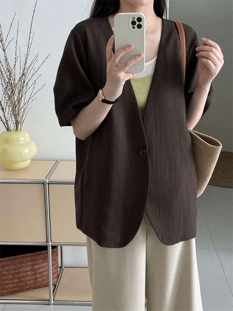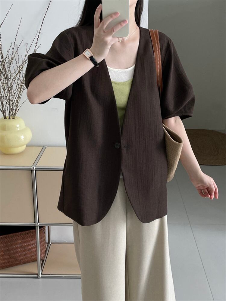 自信を持って 綿のスーツ 気質 ボタン一粒 コート レディース ゆったりする パフスリーブ 洋服 上着