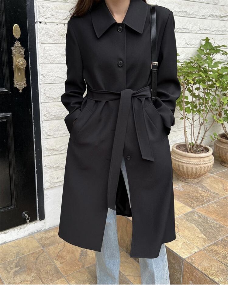 週末に着たい服 自社生産 トレンチコート 単体ボタン ギャザリング レースアップ デザインセンス