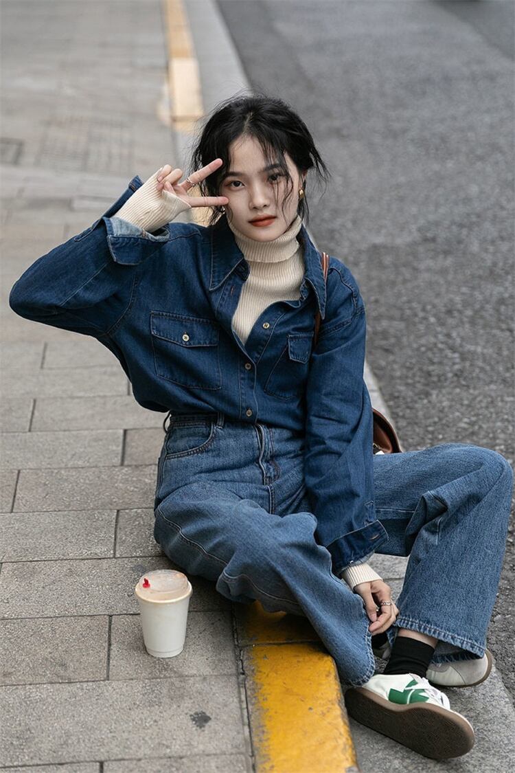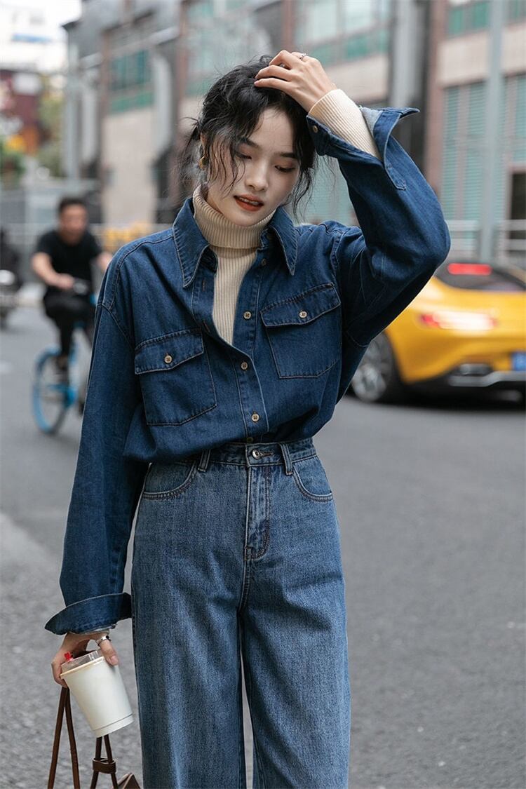 オシャレ度UP デニムシャツ トップス タイドファッション 長袖 インナー 上着 シャツ コート トレンド