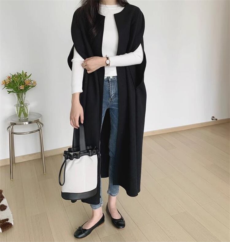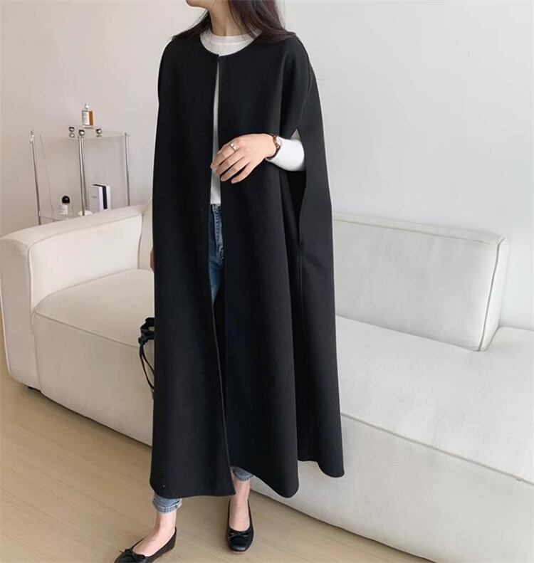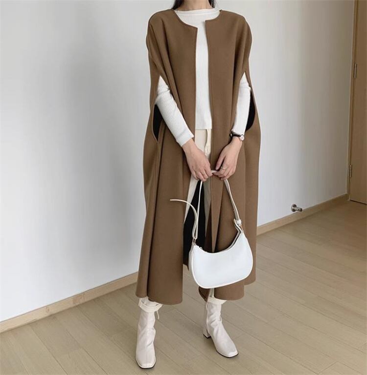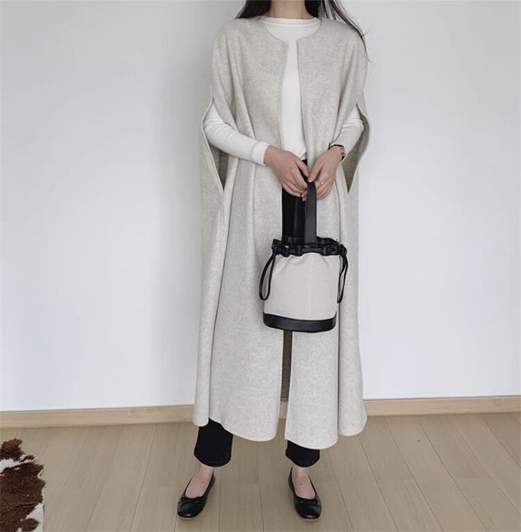 最後の仕上げに1枚 ラウンドネック 中長セクション コート ゆったりする マント式上着 デザインセンス