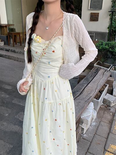 2024 春夏 ライトニット カーディガン トップス 羽織り加工 ショート丈 薄手 長袖 紫外線対策 UV対策 きれいめ オフィス OLネックカジュアルフレンチフェミニンファッション韓国レディース