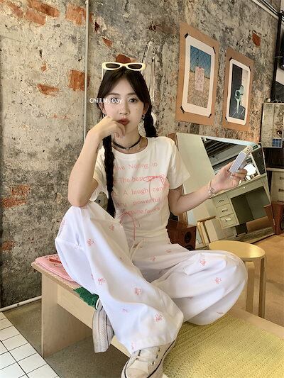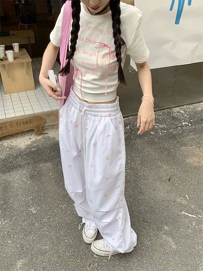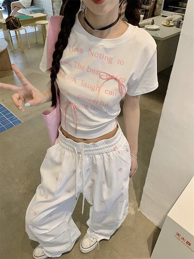 2024 春夏トップス Tシャツ 半袖 ラウンドネック スリム 丈短め ショート イラスト かわいい 夏 おしゃれスリーブ カジュアル ファッションレディース 韓国 お出かけ