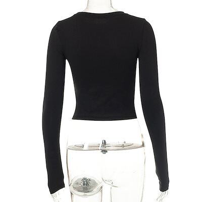 2024 春夏 女度を格上げ tシャツ ファッション トップス ショート 薄手 韓国系 長袖 薄手 フィット プリント レイヤード 重ね着 肌見せ 女っぽハイフレンチタイト レディース T