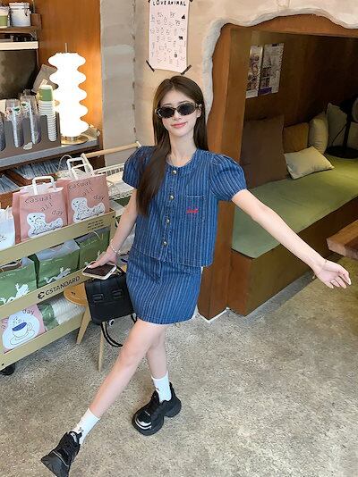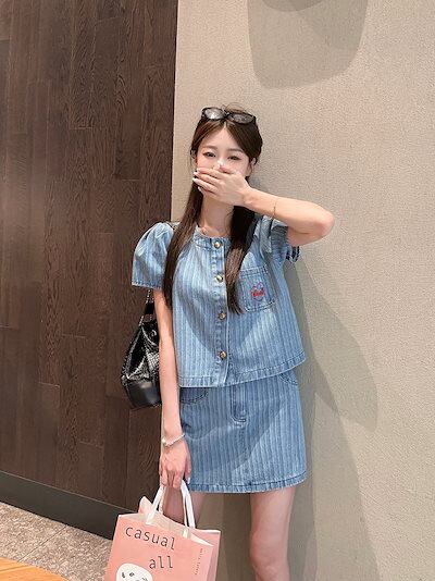 2024 夏ショート丈 シャツ ブラウス ミニスカート 2点セット 韓国半袖tシャツ レースアップ ボトムス スリーブトップス 大人可愛いファッションレディースフェミニンカジュアル上下ハイウエスト