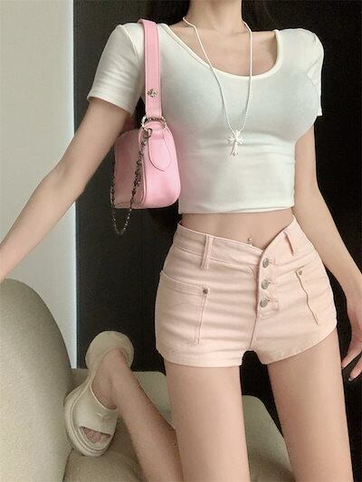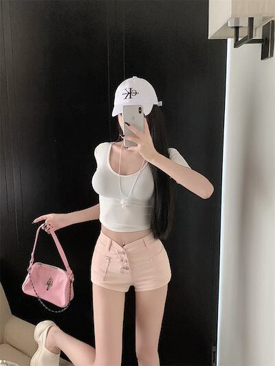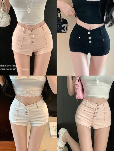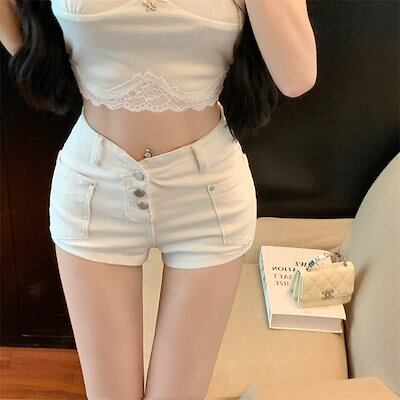 2024 春夏パンツ デニム ジーンズ ハーフパンツ ハイウエスト 脚長効果 美脚効果 レッグ 細見え カジュアル かわいい おしゃれ 春 韓国系ファッション レディース お出かけ