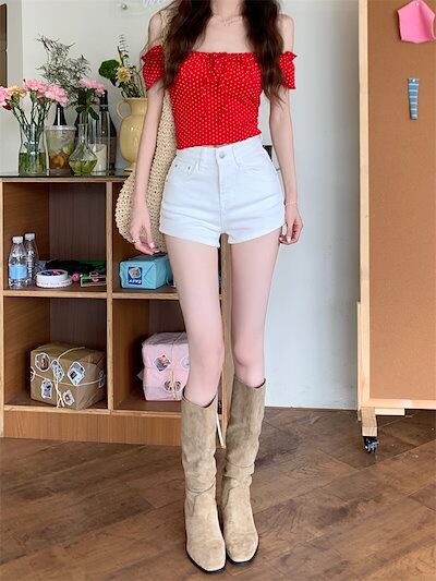 2024 春夏パンツ デニム ジーンズ ハーフパンツ ハイウエスト 脚長効果 美脚効果 レッグ 細見え カジュアル加工 かわいい おしゃれ 春 韓国系ファッション レディース お出かけ★4