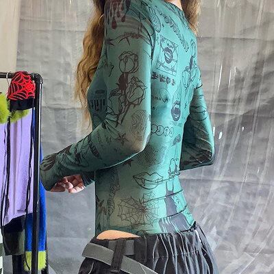 2024 春夏 女度を格上げ tシャツ ファッション トップス ショート 薄手 韓国系 長袖 薄手フィット プリント レイヤード 重ね着 肌見せ 女っぽハイフレンチタイト レディース T