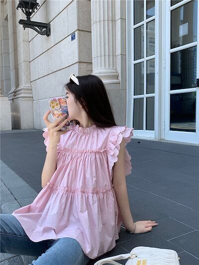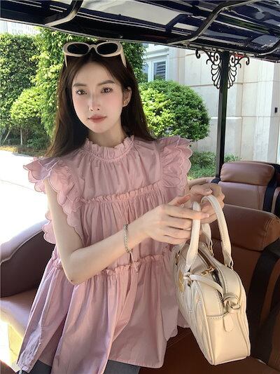 2024春夏トップス シャツ メロウネック フレア 半袖 ゆったり 夏 黄色 白 カジュアル かわいい ガーリー キュート 甘め おしゃれ 韓国ファッション レディース お出かけ