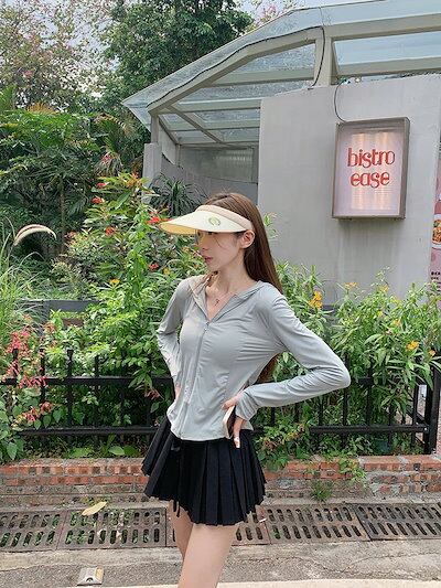 2024春夏 涼しげ ショート丈 パーカー トップス アウトドア 海 日焼け対策 フード付きジッパーファッション レディース韓国長袖 プール キャンプ パーカー 帽子 アウター トラック