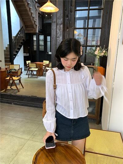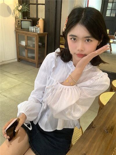 2024春夏トップス シャツ ブラウス 長袖 メロウネック スタンドカラー ボタン 春 白 ホワイト かわいい ガーリー 甘め おしゃれ 韓国ファッション レディース お出かけ