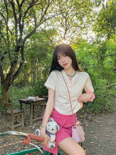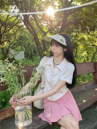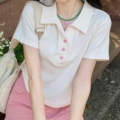 2024 春夏選べる2タイプ トップス ポロシャツ 半袖 襟 スタンドカラー Vネック 夏 オフホワイト アイボリー かわいい おしゃれ カジュアル 韓国ファッション レディース お出かけ