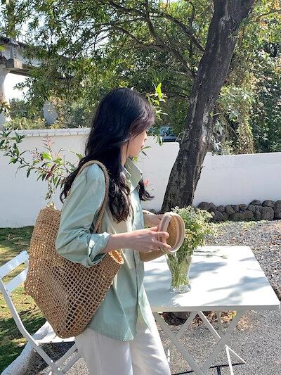 2024春夏トップス シャツ 長袖 ボタン 襟 スタンダードカラー 単色 シンプル 春 白 青 黄色 緑 カジュアル かわいい おしゃれ 韓国ファッション レディース お出かけ