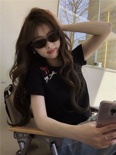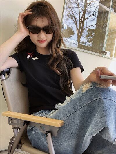 2024 春夏トップス Tシャツ ラウンドネック イラスト 丈短め ショート 夏 かわいい おしゃれ カジュアル 韓国ファッション レディース